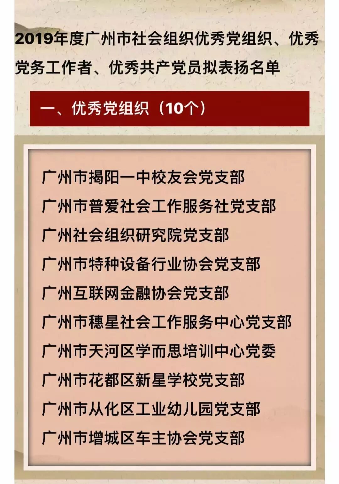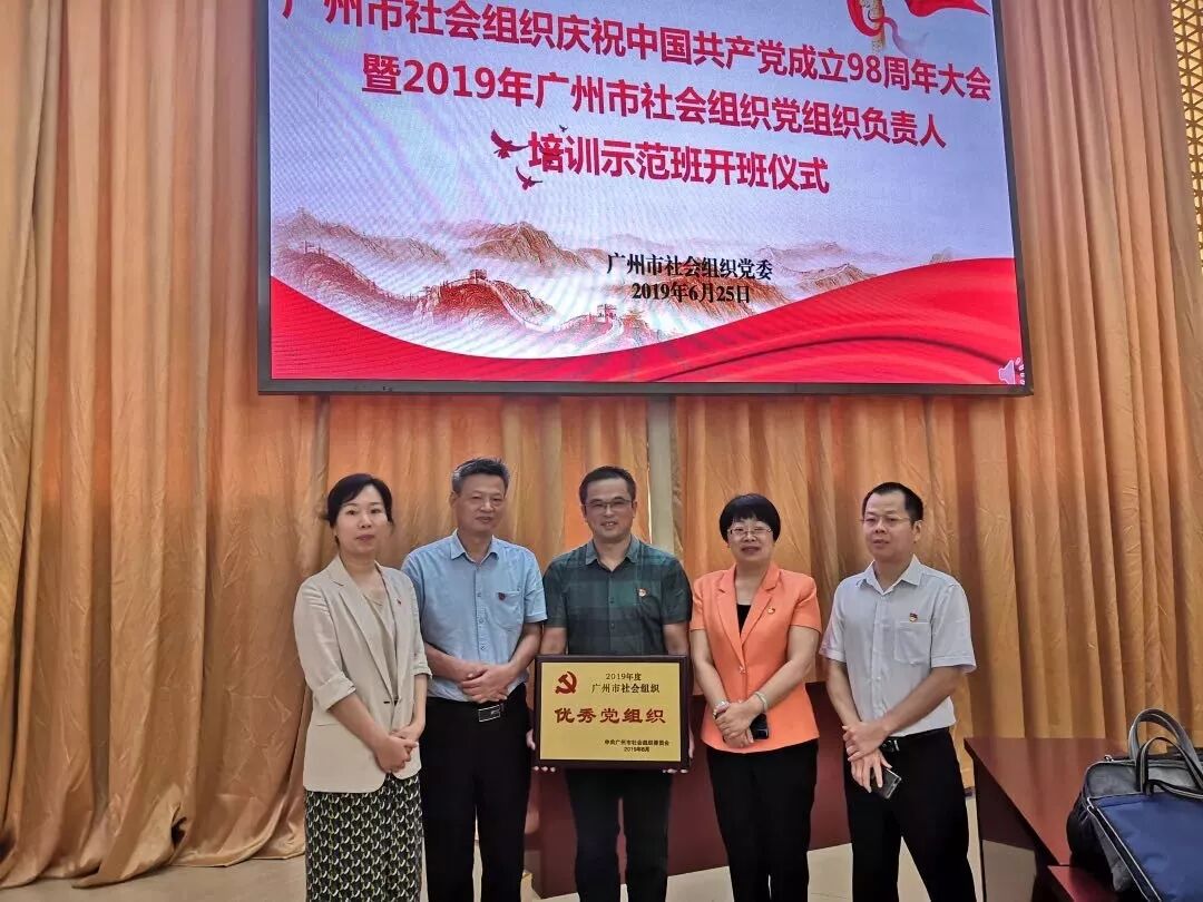 2019年6月25日,在中共广州市社会组织委员会召开的“广州市社会组织庆祝中国共产党成立98周年大会暨2019年广州市社会组织党组织负责人培训示范班开班仪式”中,我会党支部被评选为优秀党组织。