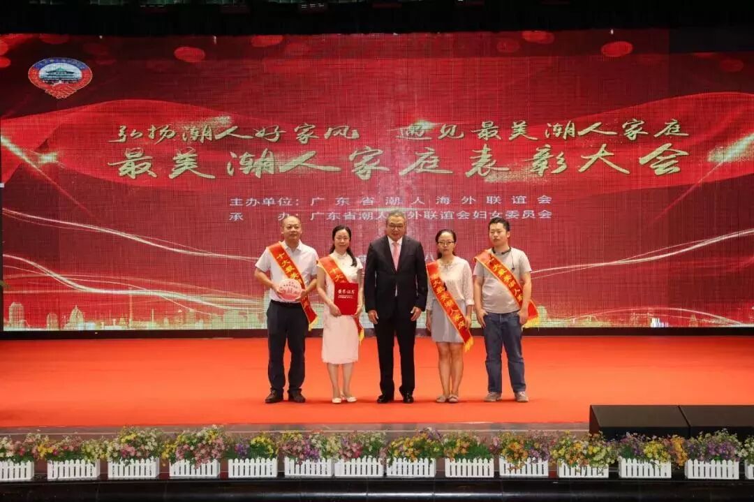 2019年8月24日,广东省潮人海外联谊会在广州举行“十大最美潮人家庭”和“最美潮人家庭”表彰大会,我会推荐参评的吴依娜家庭荣获“十大最美潮人家庭”称号,李扬训家庭获得“最美潮人家庭”称号。