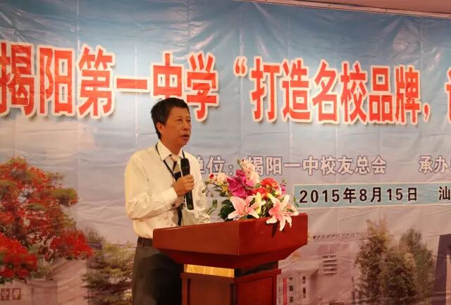 2015年8月15日下午,揭阳一中校友总会2015年年会暨“打造名校品牌,谋划未来发展”教育论坛在汕头南澳青澳湾半岛酒店举办。揭阳市副市长林丽娇、揭阳市教育局局长陈育文、揭阳一中校长方少明、揭阳一中校友总会会长汪林佳等领导,以及来自母校揭阳一中的领导、教师代表及各地校友会代表共100多人参加了本次会议。广州校友会代表团一行4人由常务副会长43届杨鸿南校友带领参加。