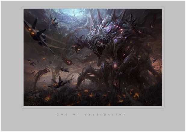在CG创作方面,以上三者他总是有意识地同步积累,也就是在这样的深刻学习中,使他后来的作品总是多出几分韵味和精神气,大概就是他对于CG“基础”的这种独特认知,使得他能够创作出具有个人特色的创意作品,譬如他的个人作品——《The god of destruction》,参加了世界游戏美术大赛,并拿了全球高名次。