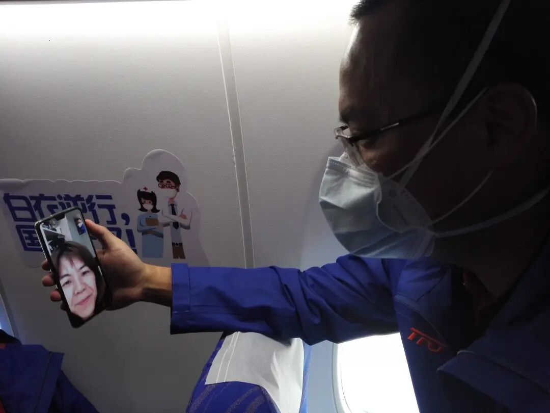 飞机着陆广州,蔡跃新在机上与妻子视频通话