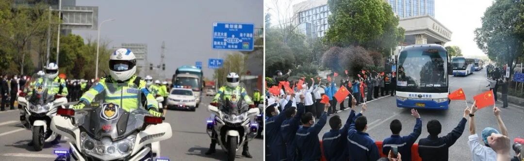 湖北警车开道、民众欢送广东援鄂医疗队